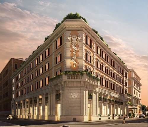L’hotel, nei pressi di via Veneto, si svilupperà su due edifici di pregio architettonico risalenti al XIX secolo. I due edifici, di 6 piani fuori terra, saranno uniti attraverso un corpo centrale adibito a nuova reception. L’hotel ospiterà 159 camere e suites. Grande importanza verrà data agli spazi per la socialità: W Living Room, la Lobby da vivere e non solo luogo di accoglienza e di passaggio, due ristoranti e più di 120 metri quadri di spazio eventi, oltre a palestra e SPA. A coronamento della ‘W Experience’, un esclusivo roof top bar sorgerà sulle terrazze all’ultimo piano.